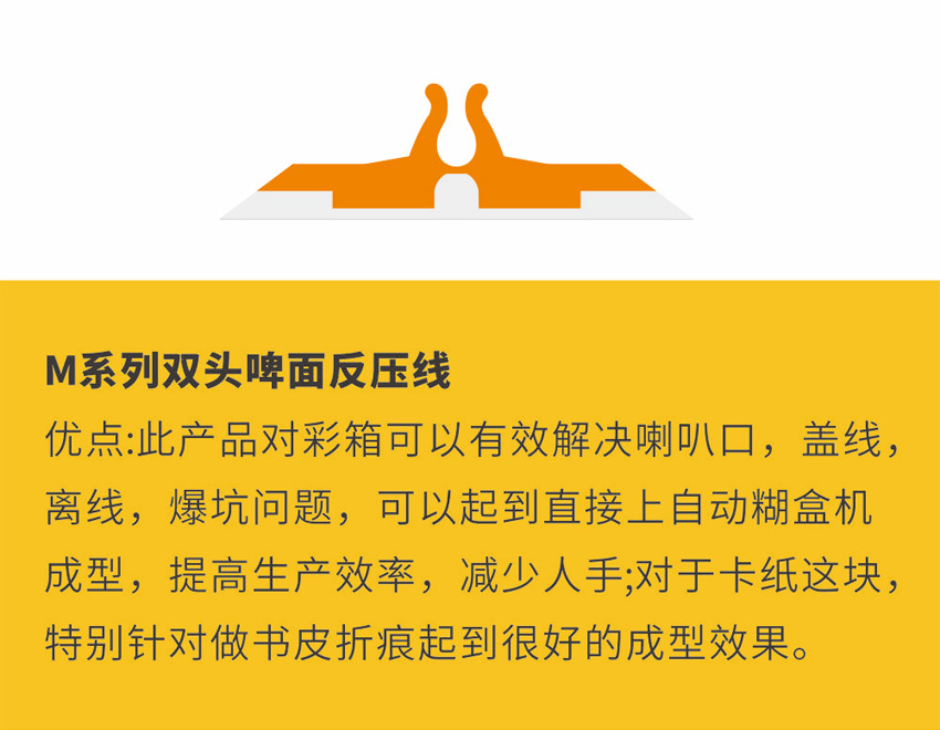 印刷過程當中有些產品需要凸槽壓痕效果,這就必須使用特殊的反壓線,我們知道壓痕線的效果是達到模切品的凹槽形狀,所以這種往上凸槽壓線往往也有人稱之為:反壓痕線。